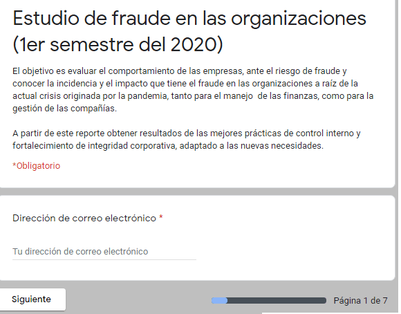 El objetivo es evaluar el comportamiento de las empresas, ante el riesgo de fraude y conocer la incidencia y el impacto que tiene el fraude en las organizaciones a raíz de la actual crisis originada por la pandemia, tanto para el manejo de las finanzas, como para la gestión de las compañías.